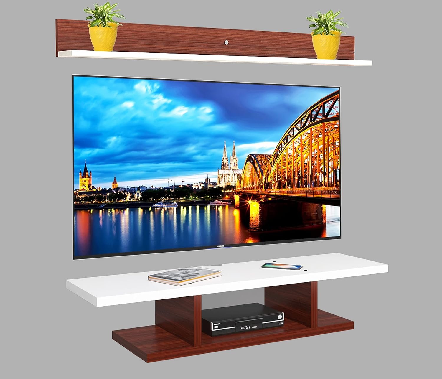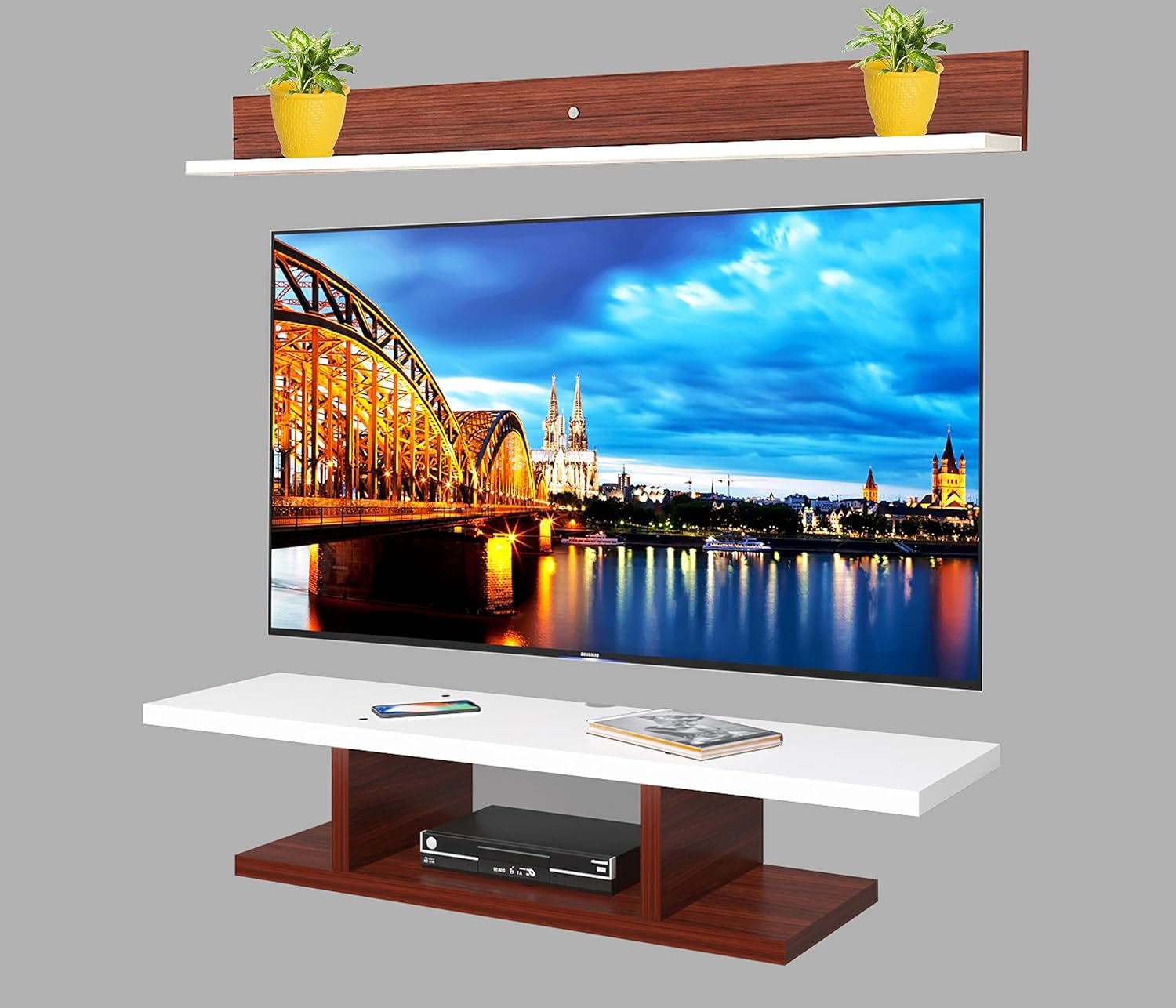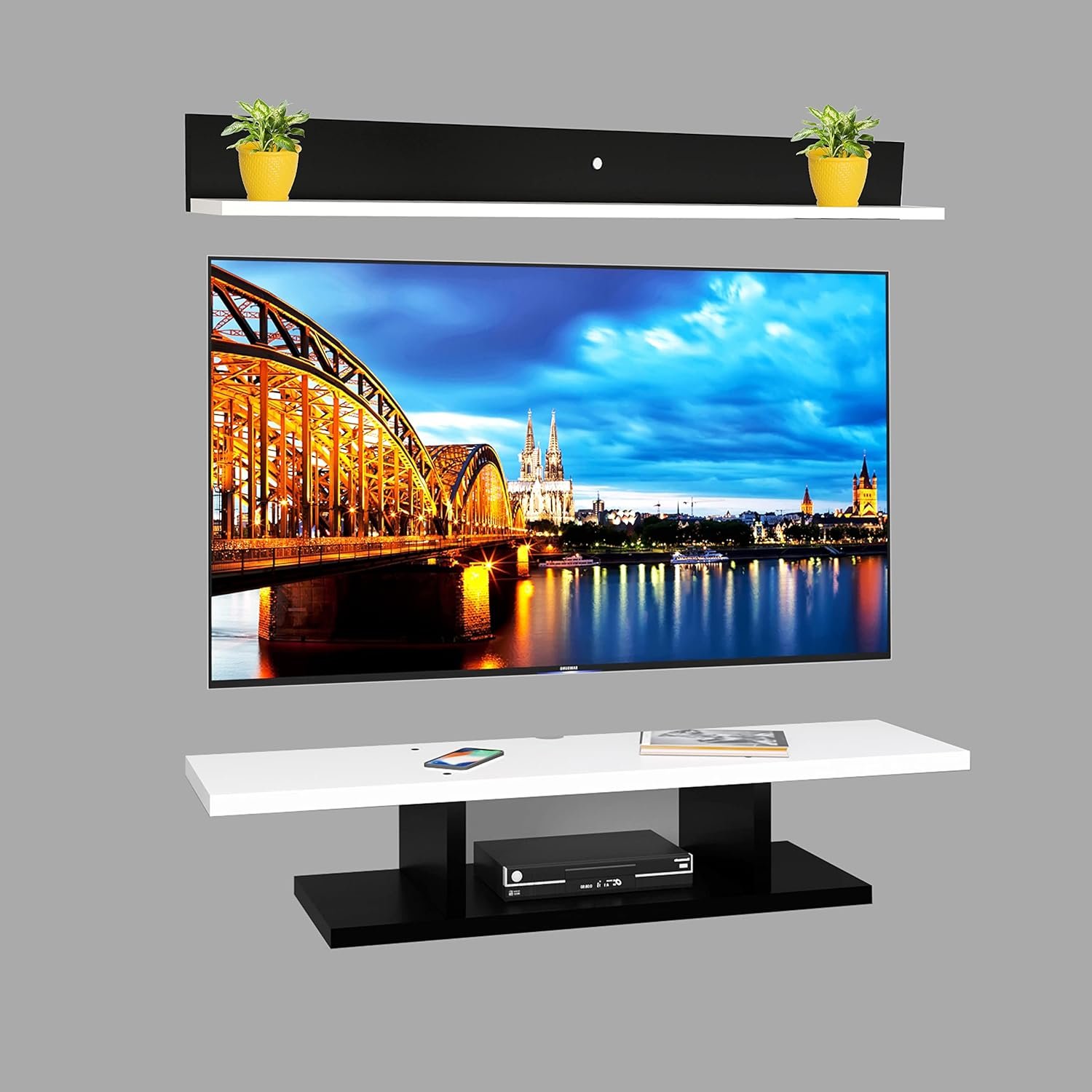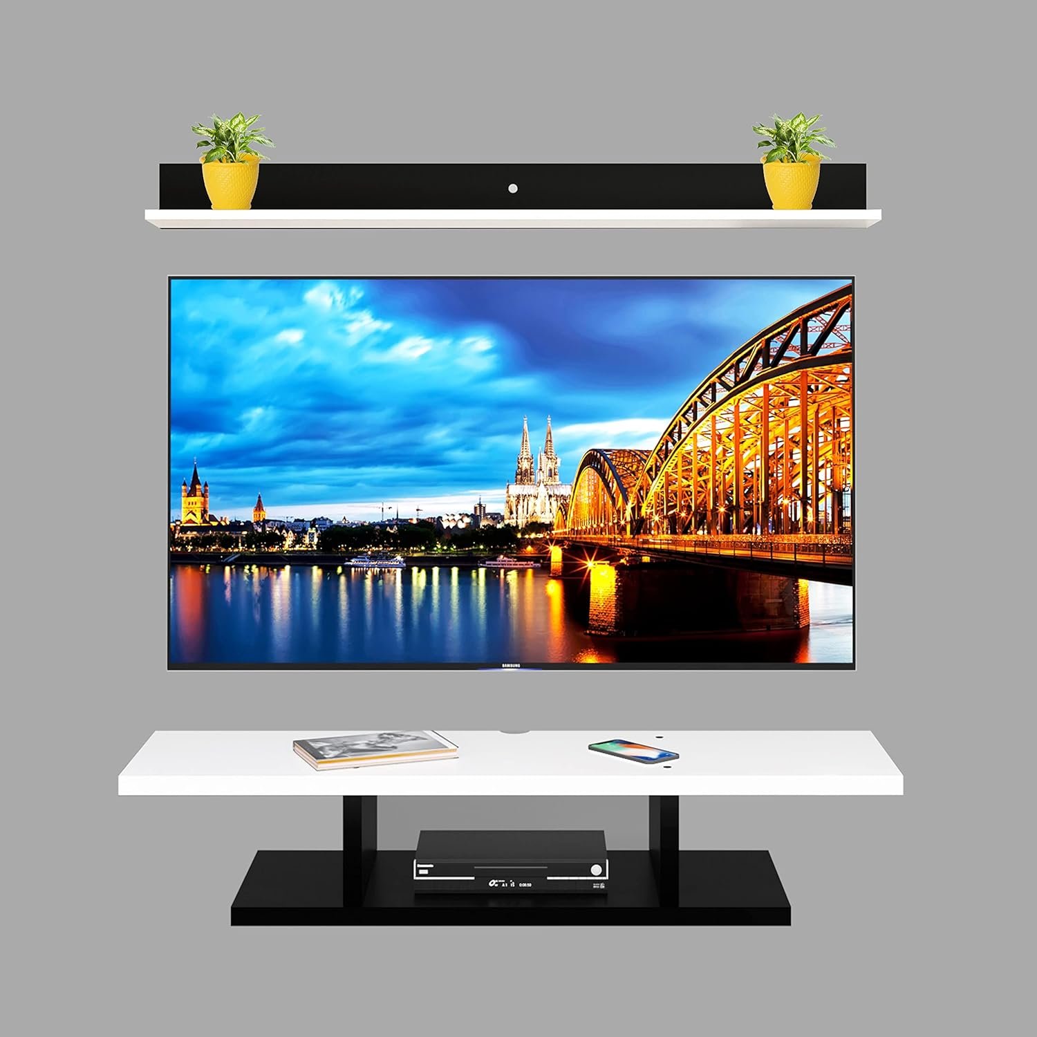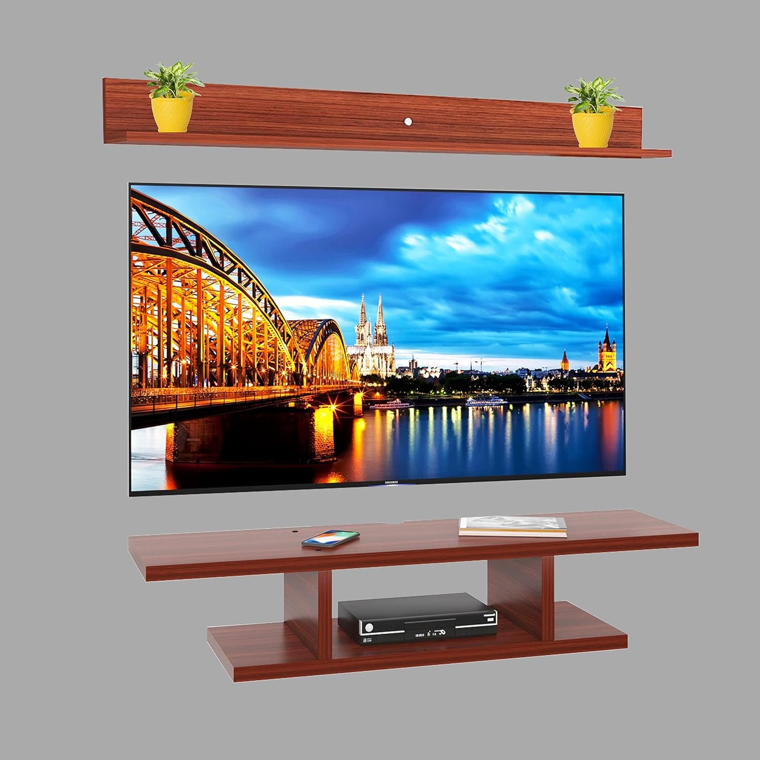 Engineered Wood TV Entertainment Unit Set Top Box Stand | TV Cabinet for Living Room with Wall Shelf Display Rack, Wall Mounted TV Unit – Ideal for Upto Size 32