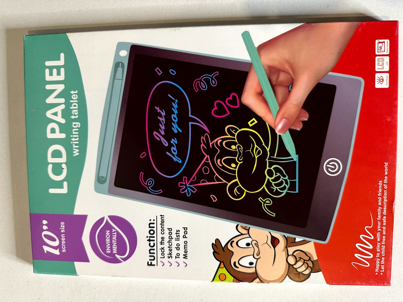 With a one-button erase function and screen lock feature, this tablet is simple, eco-friendly, and safe for children. Lightweight and portable — ideal for home, school, travel, and car rides.