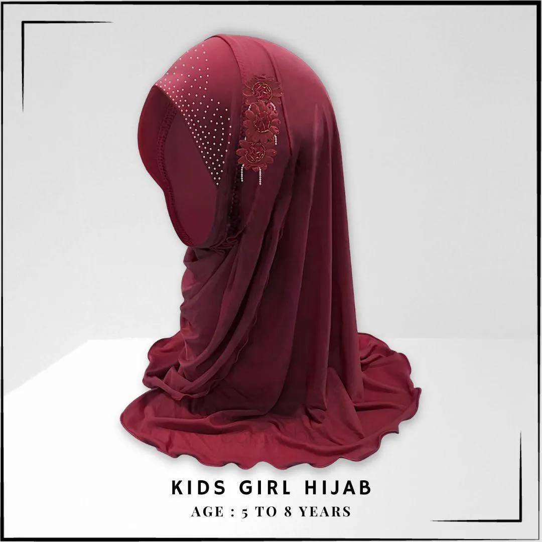 • More Info: Muslim Kids Girls Hijab with Diamontes Flower Scarf, Age Range: 5 to 8 Years, One Piece Children Full Cover Makna Wrap Cover