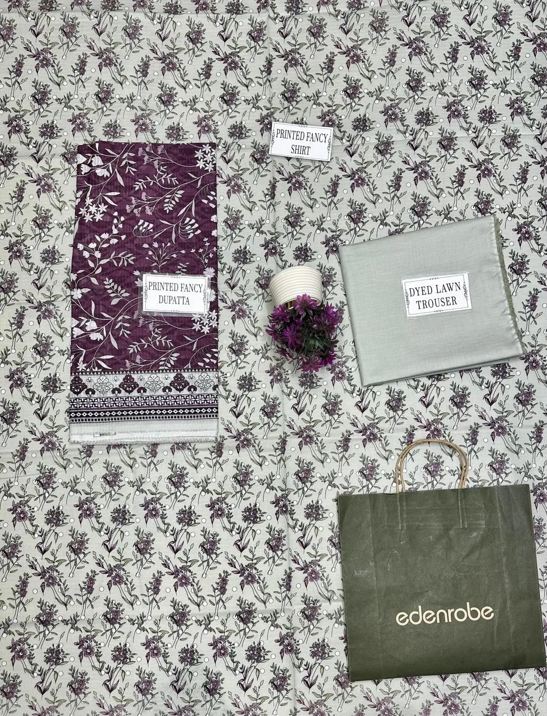 Title: Sunshine Grey 3-Piece Dobby Lawn Suit – Self-Textured Fabric with Designer Print