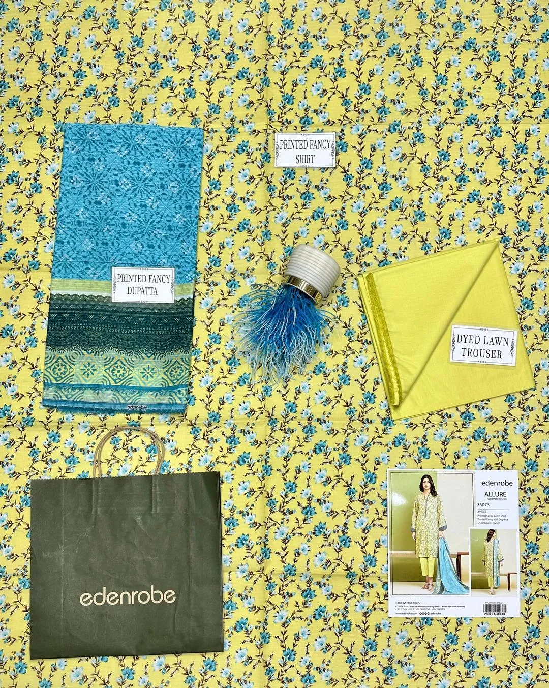Brighten up your wardrobe with our Sunshine Yellow Dobby Collection. This 3-piece unstitched ensemble is crafted from premium Dobby Lawn, a high-end fabric that features a built-in textured weave, giving the suit a sophisticated and luxury feel.